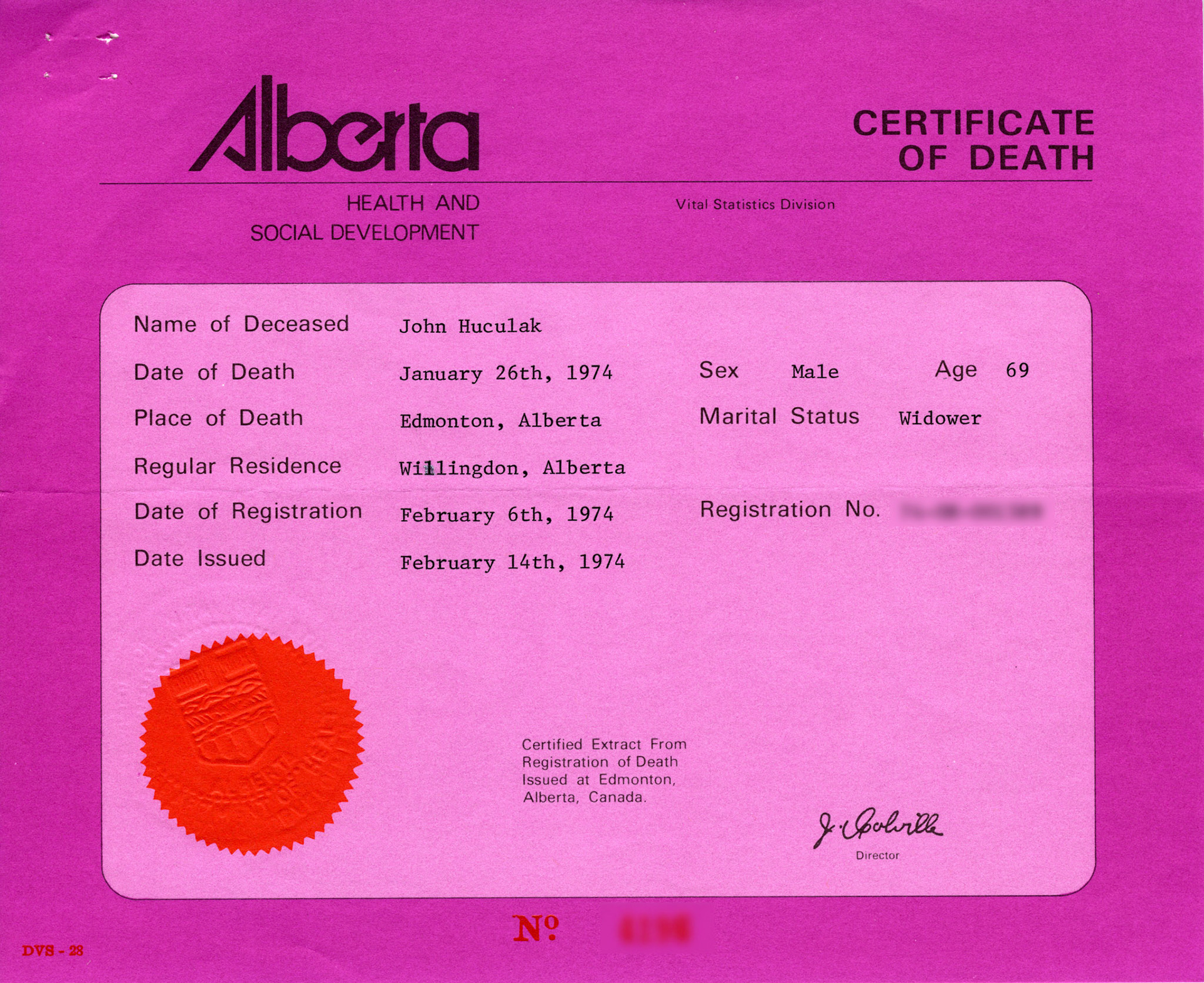 This has an incorrect location for J.Huculak birthplace, see batpism. Marriage cert. for John Huculak & Annie Darda Nov 11 1928